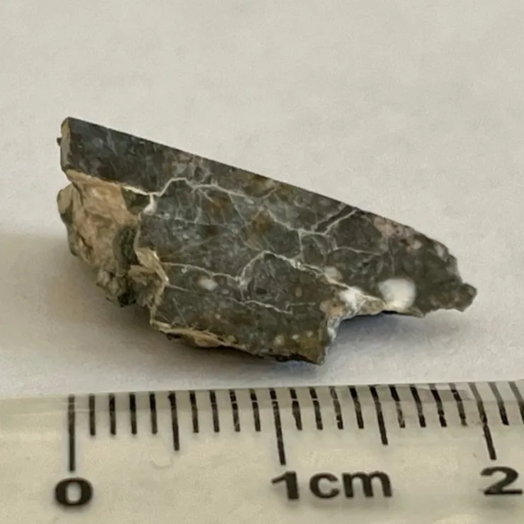 Denna vackra månmeteorit är klassifiserad som Northwest Africa 15945 – Lunar feldspar breccia
