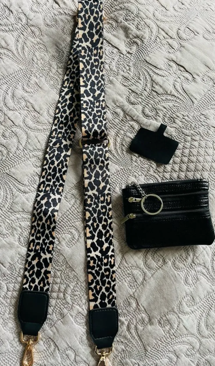 Mobilband i leopardmöster med tillhörande svart plånbok. Helt ny . Du står för porto och jag för emballaget.