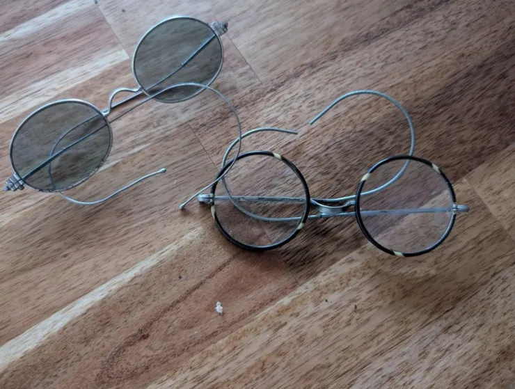 Best Sale Två par runda glasögon, antika, solglas och vanliga Antikviteter