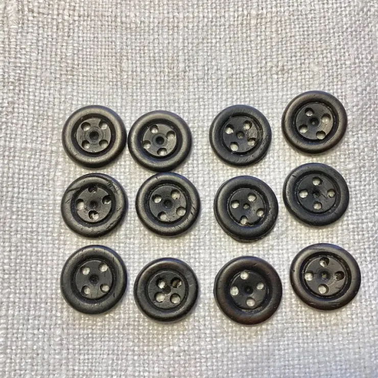 12 st Äldre Benknappar Svarta 1,5 cm Ø Vintage.