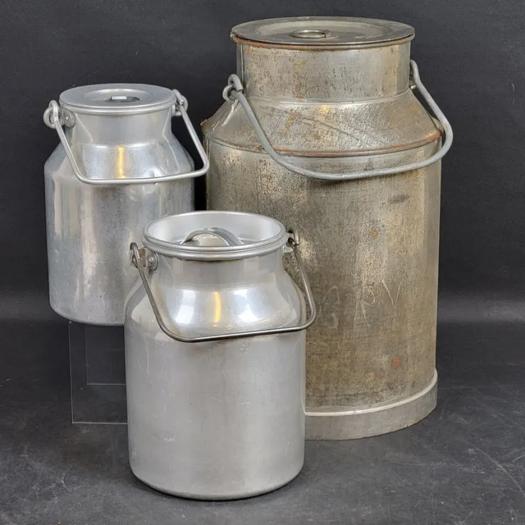 3st. Mjölkkannor i metall med lock – Kannor – Allmoge