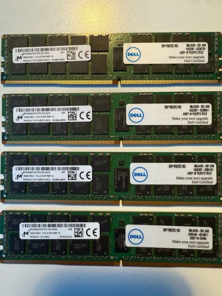 Sälj fyra stycken Dell-certifierade RAM-minnen. Varje minne är på 16GB, DDR4 2133