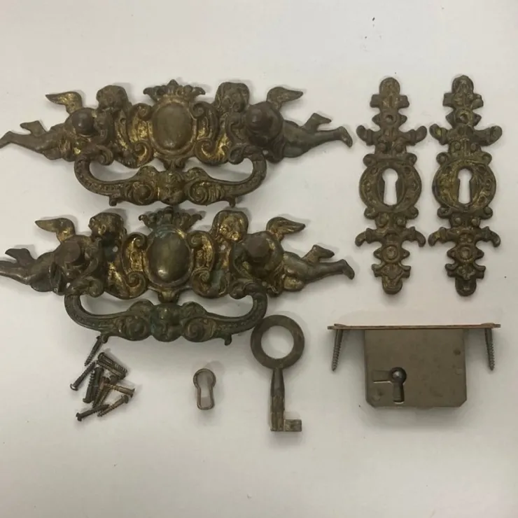 Cheap Antika lådbeslag amoriner nyckelbeslag lådlås med nyckel o nyckelbeslag Beslag & Reservedele