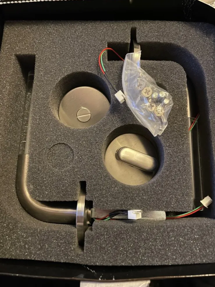 Brighthandle Alfa Online Duo dørhåndtag, model A2-RR-40-1, til dørtykkelse 35-50 mm. Indvendig dør lås. Ny og ubrugt i original emballage. Inkluderer alle nødvendige skruer og monteringsdele. Se billeder for detaljer.