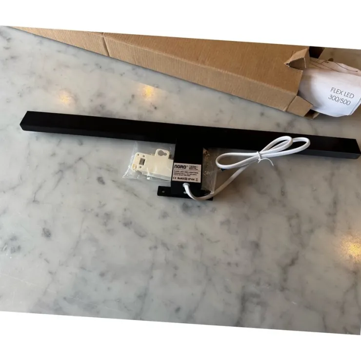 Säljer en Noro Flex LED 500 belysning. Den är 500 mm bred. IP44-klassad. Färgtemperatur 3000K. SMD2835*48pcs, 7W, 400-450lm. Ny och oanvänd i förpackning, inköpspris 929:-. Skulle ha den ovanpå badrumsskåpet men har spegel på väggen så den blir oanvänd.