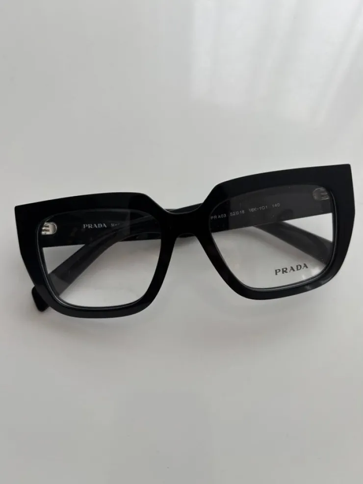 Säljer här ett par nya, eleganta bågade glasögon från Prada. Modellen är VPR A03 i svart färg. Glasögonen kommer i originalfodral och ask. Perfekt för både vardag och fest. Obs ingen styrka på glasen