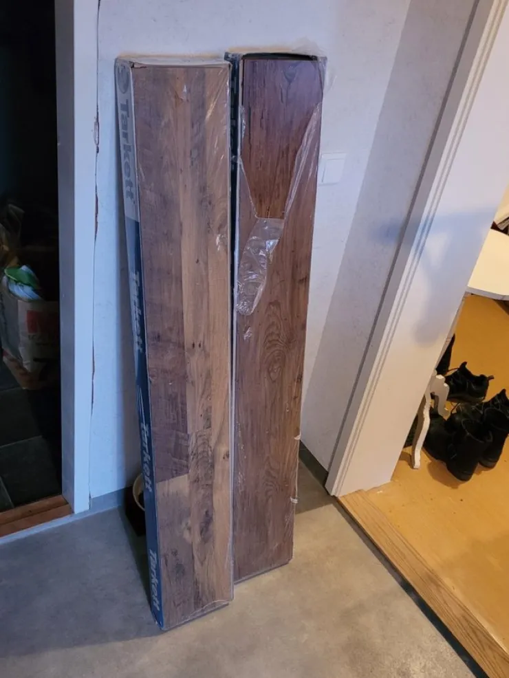 To pakker laminatgulv fra Tarkett, model SoundLogic 1032 2V i farven Bourbon Oak. Hver pakke indeholder 7 planker (1,754m²). Plankemål: 1292 x 194 x 10,2 mm. Varenr: 42097210.