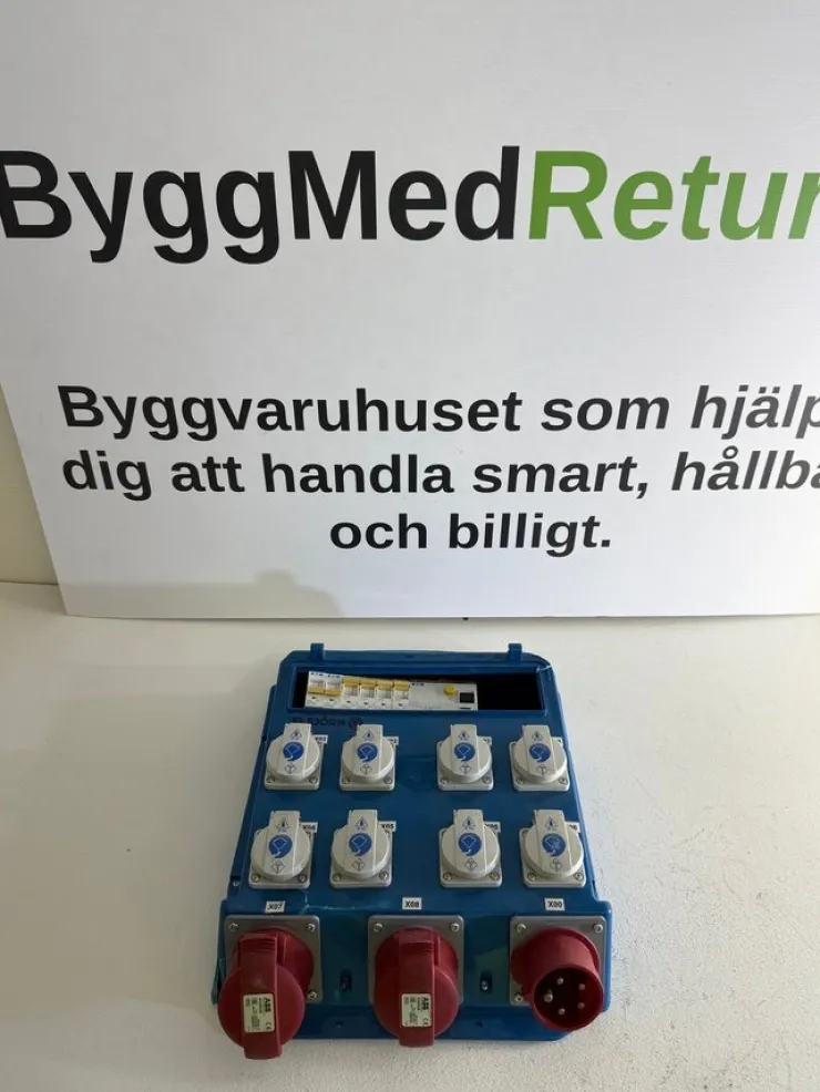 Bärbar central med många 1-fas uttag, lämplig vid arbete på mindre byggen, rotjobb m.m.