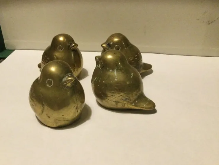 Discount Fyra söta mässingsfåglar Tin & Messing