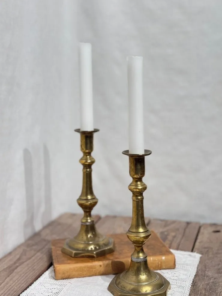 Två vackra ljusstakar i mässing med en hel del ålder. Vackert slitage. Höjd 20cm