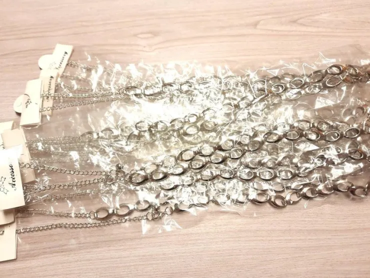 10 st halsband BILDERNA ÄR EXEMPEL men alla är liknande och i plast och det är silverfärgade och guldfärgade blandat, försökt göra paketen så varje paket med halsband har lite av varje (modell och färg) så ni får variation. Hör gärna av er om ni har funderingar