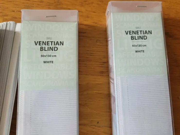 Perfekt stand. Medfølger også 'vridstænger' til at regulere vinkel/position, samt kroge som persiennerne skal fastgøres i ved montering.