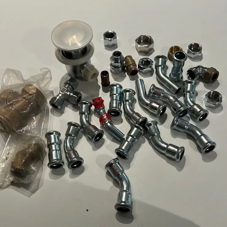 Sælger diverse blandere og fittings, herunder klämringskoblinger, vinkler og andre fittings. Mærker kan forekomme. De fleste er ubrugte. Se billeder for detaljer. Samler gerne fragt