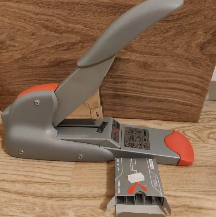 Säljer en robust häftapparat, perfekt för kontor eller hemmabruk. 1 pack häftstift ingår.