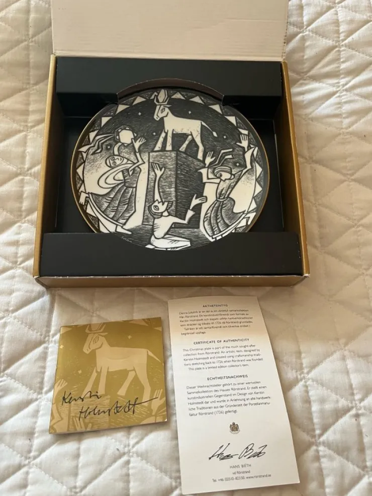 Med informations skrift om konstnären Kerstin Holmstädt och äkthetsintyg från Rörstrand
