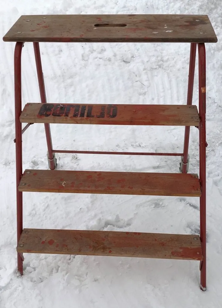 Trinbræt med maks arbejdshøjde 101 cm. Bredden på trinbrættet er 75 cm.