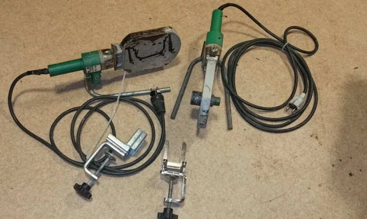 To svejsemaskiner til rør, AQ 125 TFE, sælges. Fremstillet af Ritmo s.p.a. og Aquatherm GmbH. Modelnummer og årgang fremgår af billederne. Inkluderer klemmer.