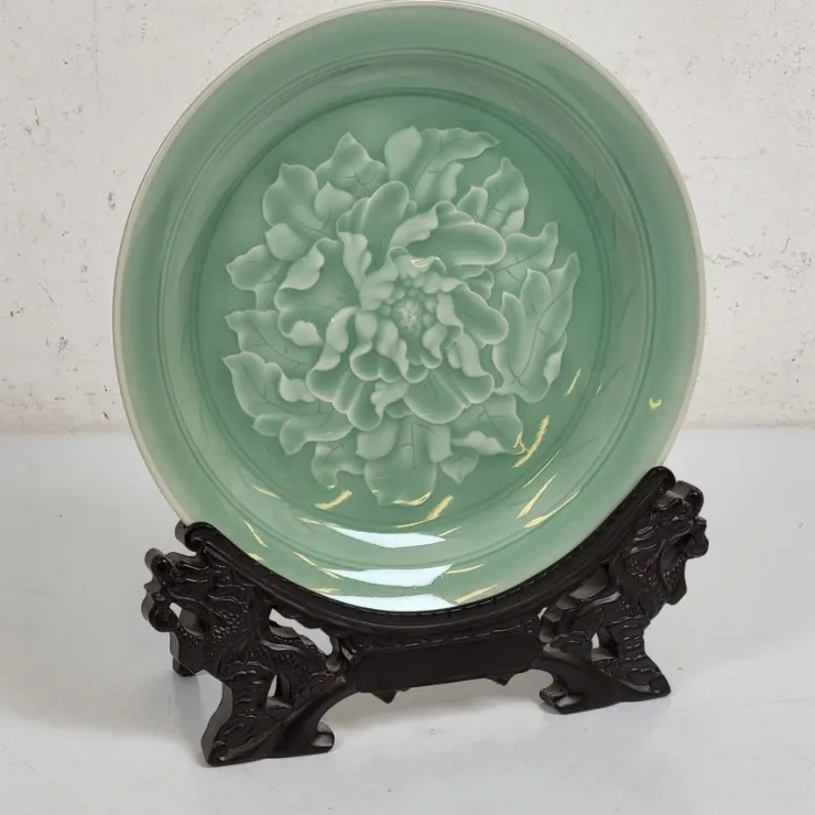 Tallrik med tallriksställ – Kinesisk celadon med glaserad porslinsplatta