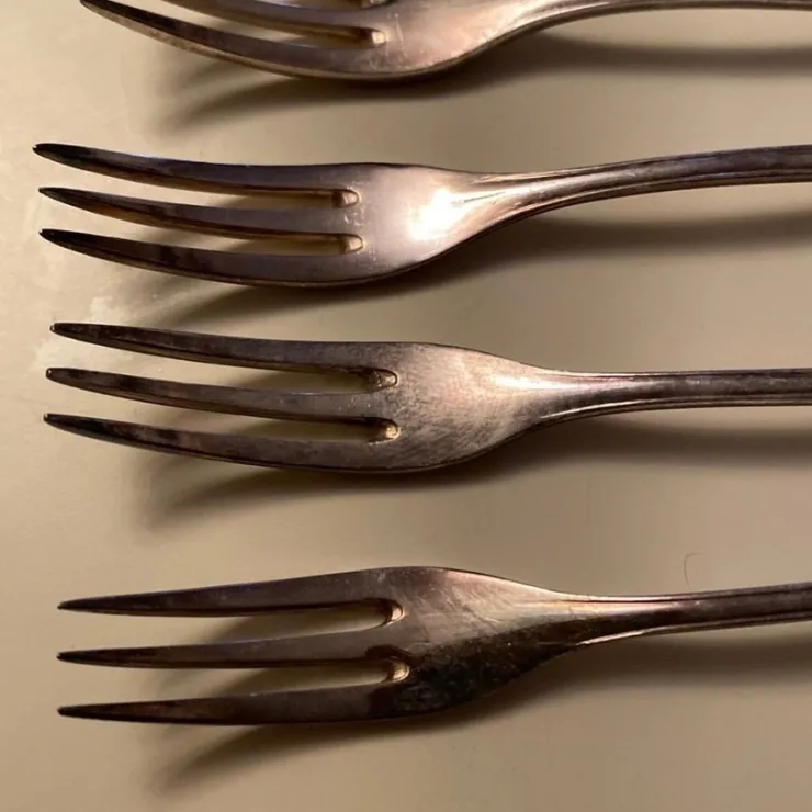 Fint äldre skick. Vit metall, stämplar på alla Extra NS 32G. ALP eller QBS Extra N.S. 45 G, ca 75 gram för alla, 12 cm.