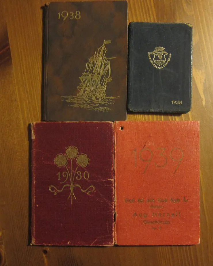 Samling om fyra gamla almanackor. Två från år 1938, en från år 1930 och en från år 1939. Almanackorna är i varierande skick, se bilder. Bra för samlare av vintage almanackor eller för den som är intresserad av svensk historia.