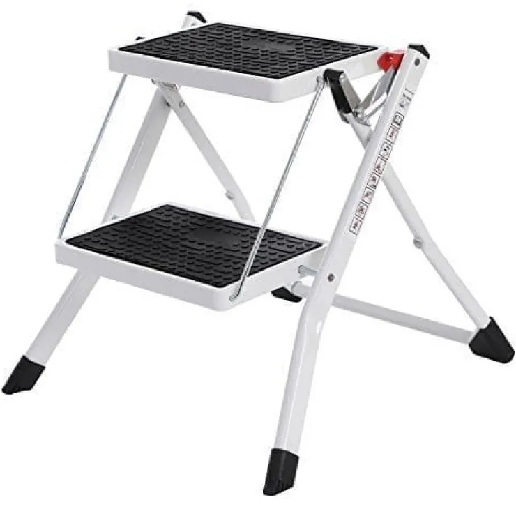 Songmics 2-trins stige, tungt stål, foldbar, bærbar med antislip måtte