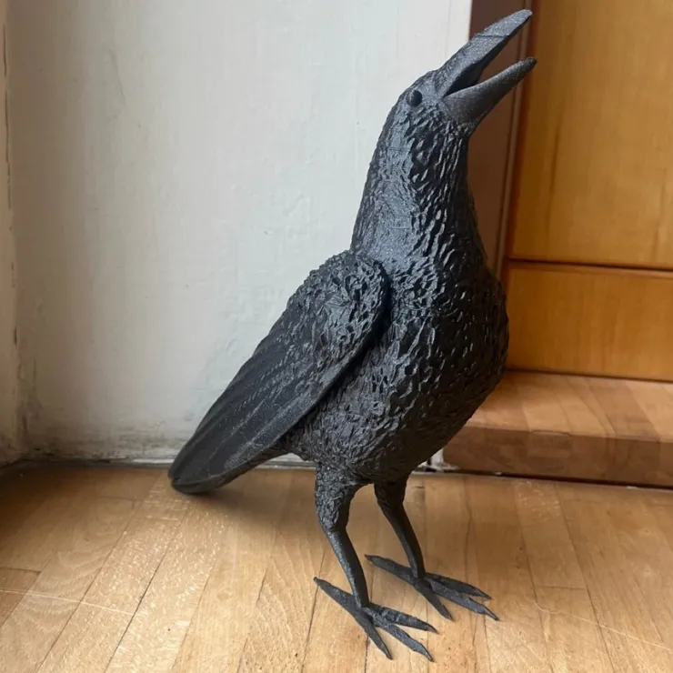 Detaljerad svart staty formad som en kråka. Skala 1:1. Från svans till näbb är den ca 28cm. Gjord av hård plast.