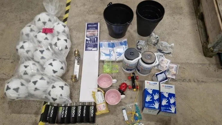 – Innehåll: Blandade produkter inklusive handskar, hinkar, sportbollar, batterier och verktyg
