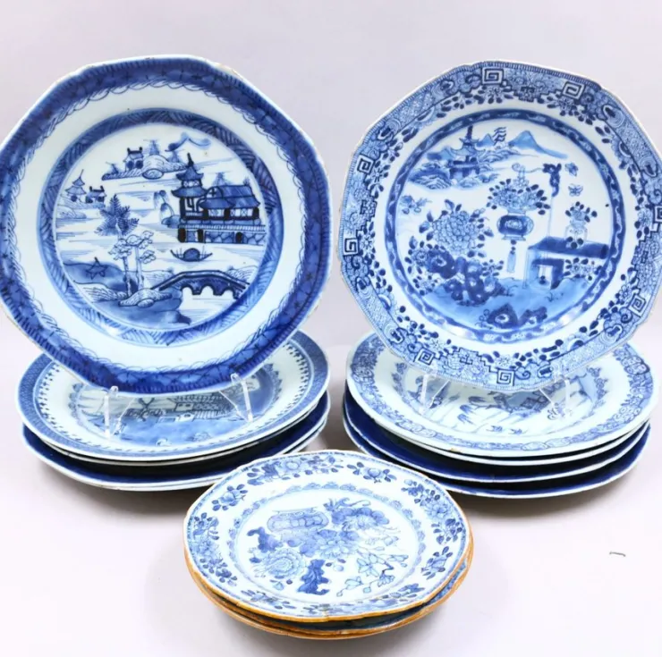 New Tallrikar, 13 st, Kompaniporslin, Kina, 17/1800-tal Orientalsk Kunst Og Porcelæn