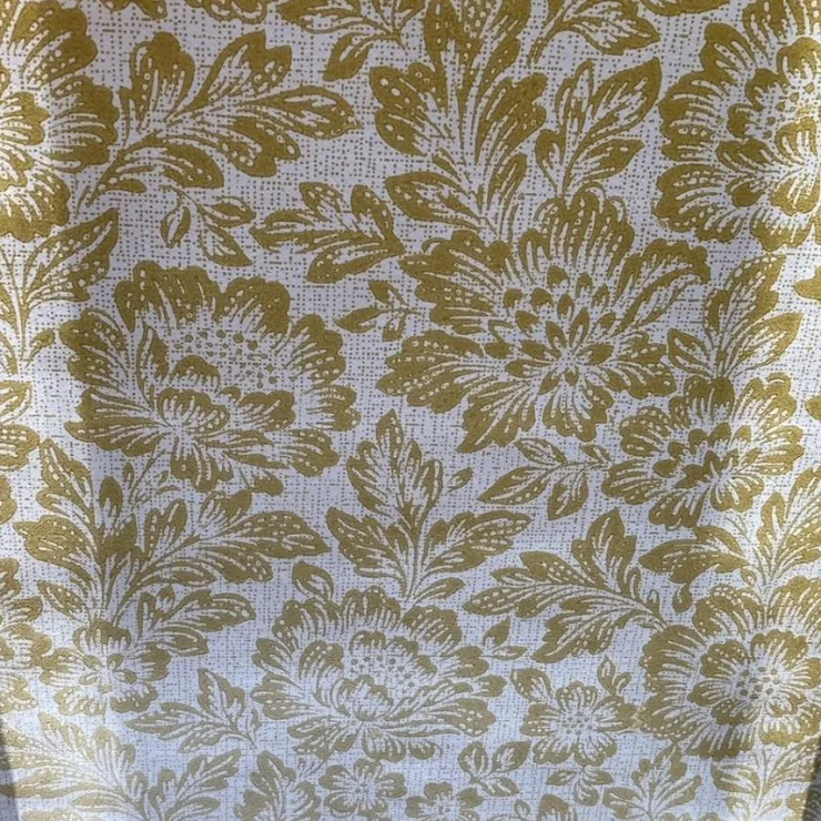 En hel Tapetrulle med ett vackert guldmönster/ senapsgul på naturvit/ beige botten. Vattentålig.