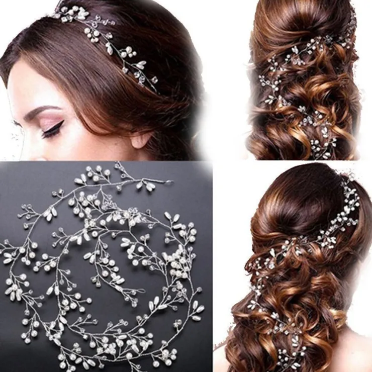 Online Kvinnor hårband bröllop diadem blad pärla kristall Bryllupstilbehør
