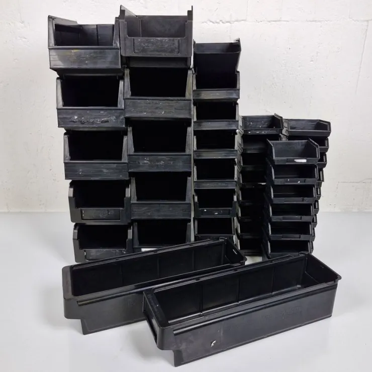 Parti plockbackar i plast – Perstorp – Plastbackar – Lådor – Sorteringsolådor