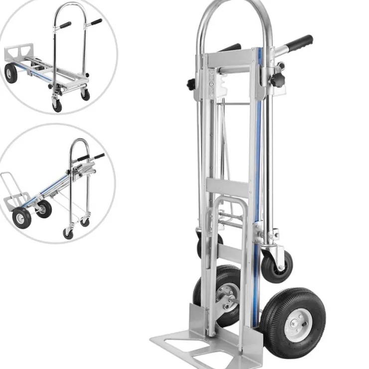 Sælger en alsidig og robust 3-i-1 sækkevogn fremstillet i aluminium. Denne vogns sammenklappelige design gør den nem at transportere og opbevare. Perfekt til både hjemmebrug og industrielle anvendelser, såsom flytning, lagerhåndtering eller transport af tunge genstande. Dens fleksibilitet gør det muligt at bruge den som vertikal vogn, skrå vogn eller flad transportvogn.