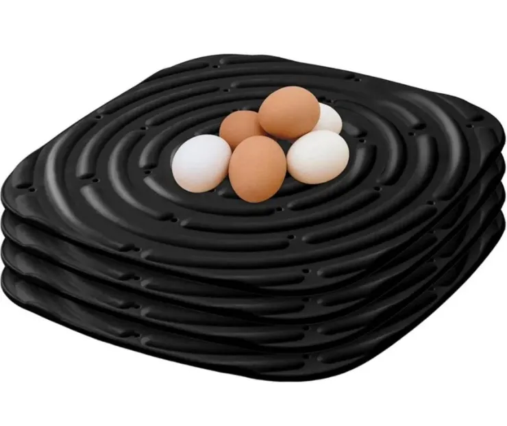 Texturerad yta som ökar friktionen och förhindrar att äggen rullar.
