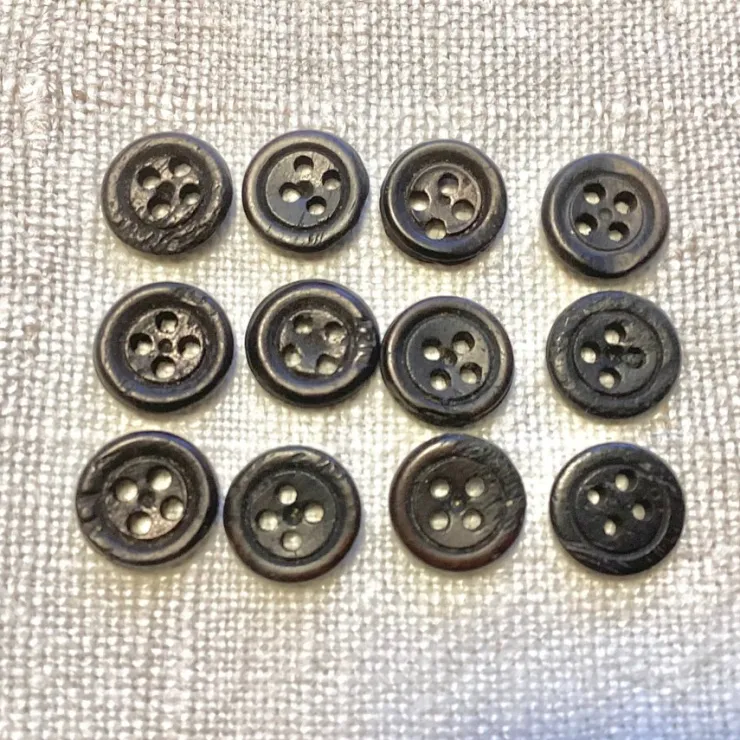 12 st Äldre Små Benknappar Svarta 1,3 cm Ø Vintage..