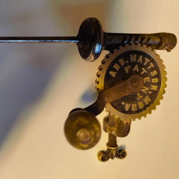 Antik handdrivet med märket "And. Mattson Patent Nbr. 1". är tillverkat i metall och har en trähandtag. Lycka till med budgivningen skickar fredagar efter betalningen