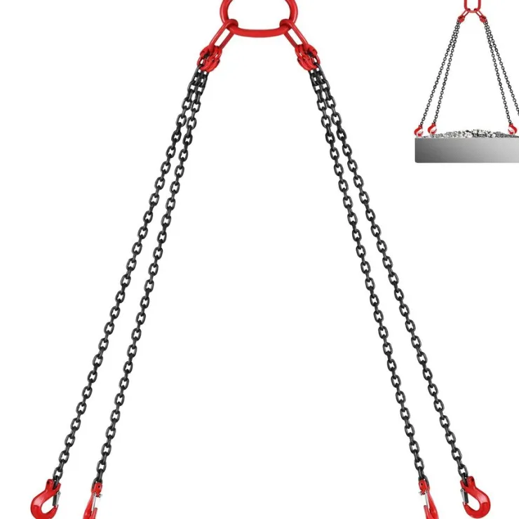 Sælger en høj kvalitet løftekæde med fire ben, en længde på 3 meter og en diameter på 8 mm. Kæden har en maksimal løftekapacitet på 5 tons og er udstyret med gribekroge og korte kæder for sikker og fleksibel brug. Perfekt til industrielle løft, byggepladser og værkstedsbrug.