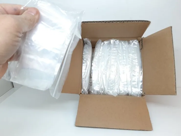 Du lägger bud på en hel kartong som innehåller totalt 1000 påsar (alltså 10 buntar med 100 påsar i varje bunt) av storleken 55×65 mm. Notera att pengar, batterier och andra föremål på bilderna är endast för visningssyfte och ingår inte i köpet.