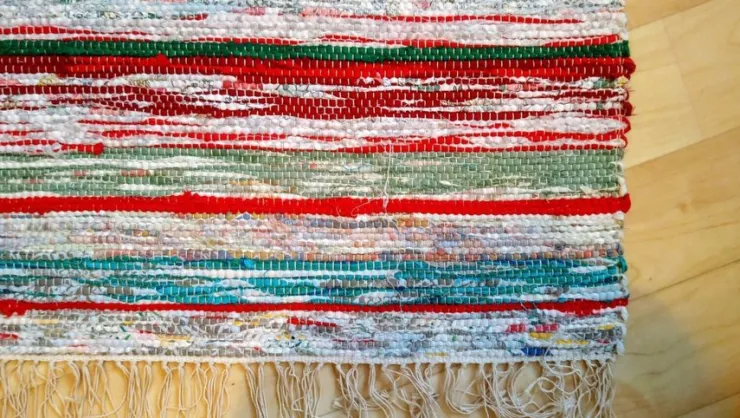 Vacker handvävd trasmatta i olika nyanser i rött och grönt. Klassisk trasmatta och perfekt för att addera en touch av lantlig charm till ditt hem. Mattans mått är 190×72 cm. I bra skick / se bilder.