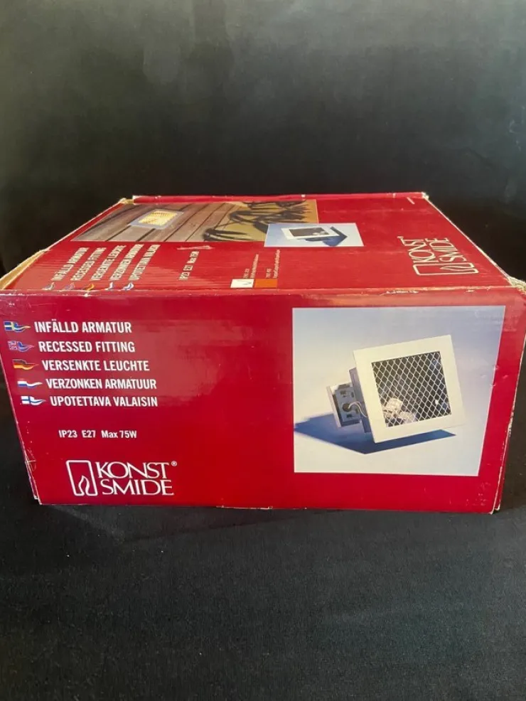 Sælger en indbygget armatur fra Konstsmide i rustfrit stål, designet til udendørs brug. Perfekt til at belyse terrassen, entréen eller andre udendørsarealer. Lampen har en E27 fatning og giver et moderne look