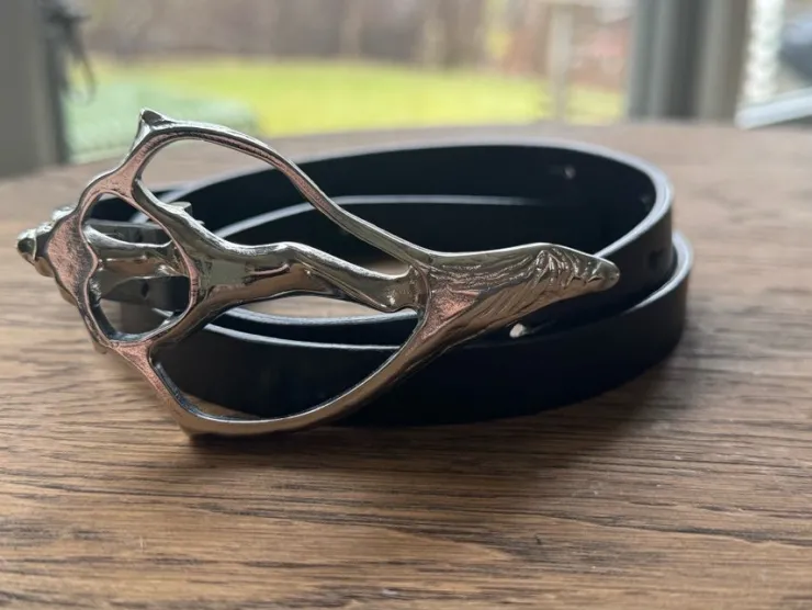 Bälte Shell från Rodebjer. Smala varianten med silver-snäcka. Äkta skinn. Mycket sparsamt använd utan slitage på skinnet.