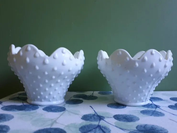 Store Två st äldre vita skålar knoppskålar Brugs- & Pyntegenstande