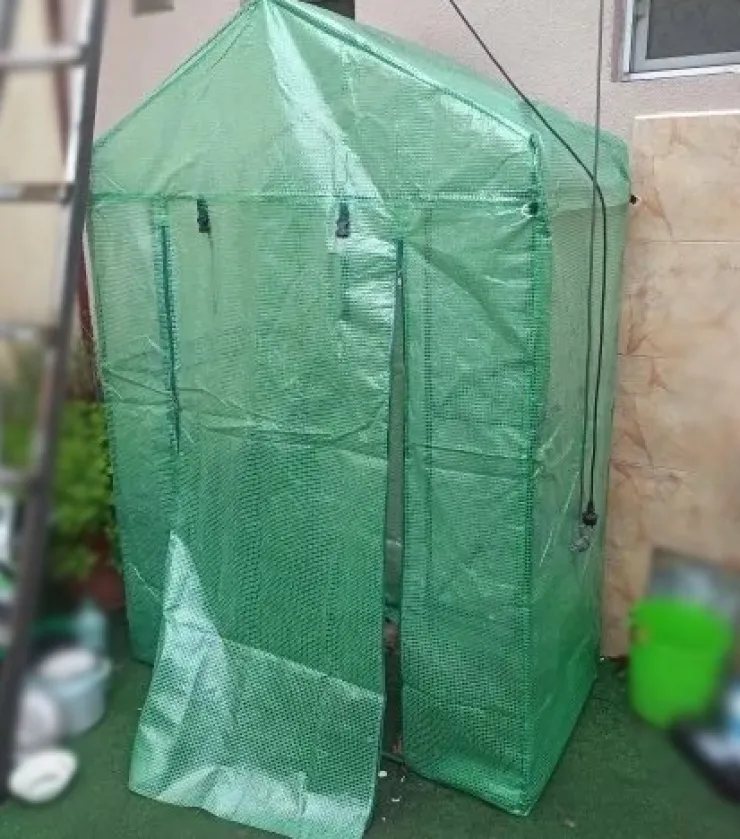 -Enpersonsmontering: Du kan enkelt montera ingångsväxthuset själv, inga verktyg krävs, bara koppla ihop stavarna enligt bruksanvisningen. Och du kan enkelt transportera den när årstiderna förändras.