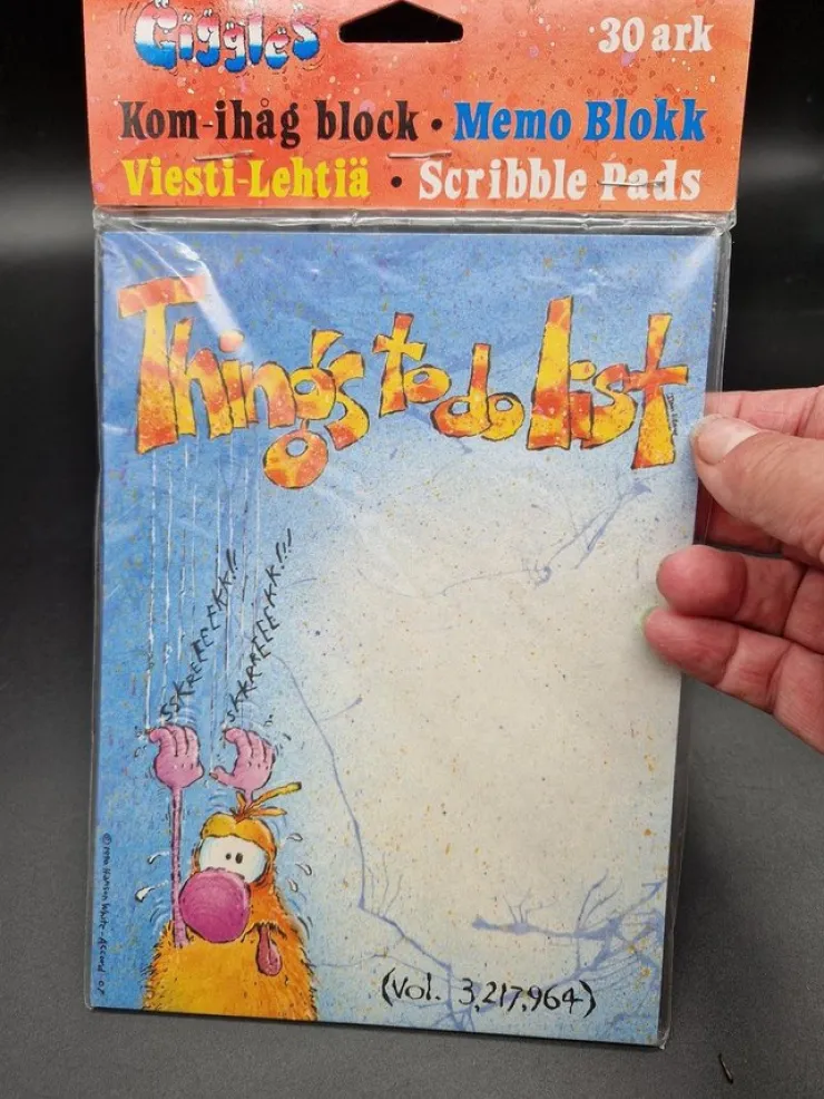 Tradera 1990 Giggles kom-ihåg-block, Memo Blokk, Viesti-Lehtiä, scribble pad 30 ark> Kuverter & Brevpapir