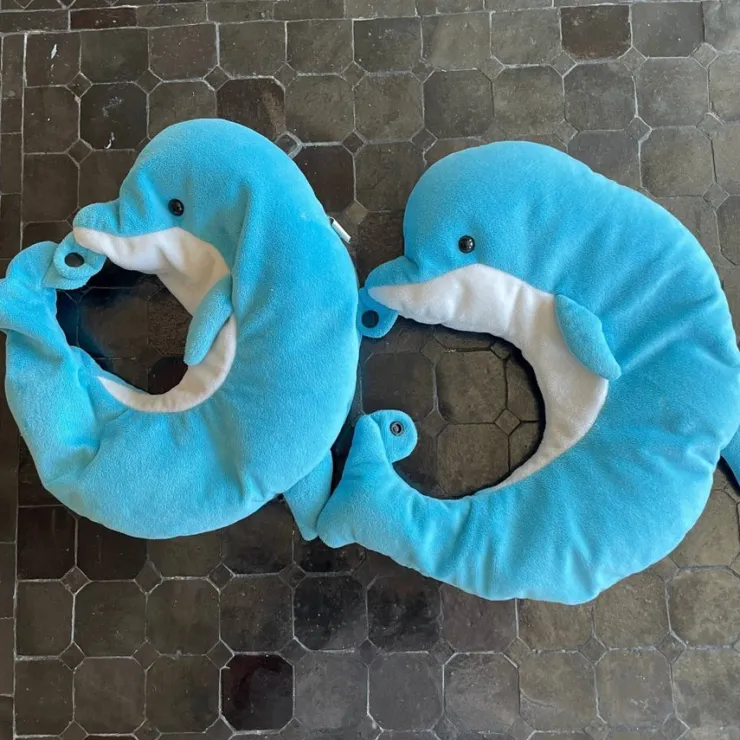 Tradera 2 st. Delfinformade nackkuddar – med tryckknapp för öppning – resekuddar| Rejsetilbehør