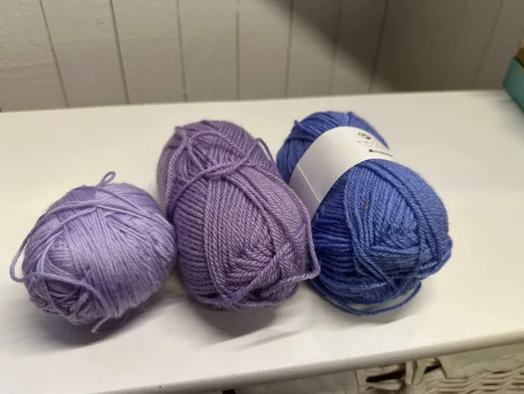 Tradera 3 akryl nystan i lila och blått| Syning & Strik