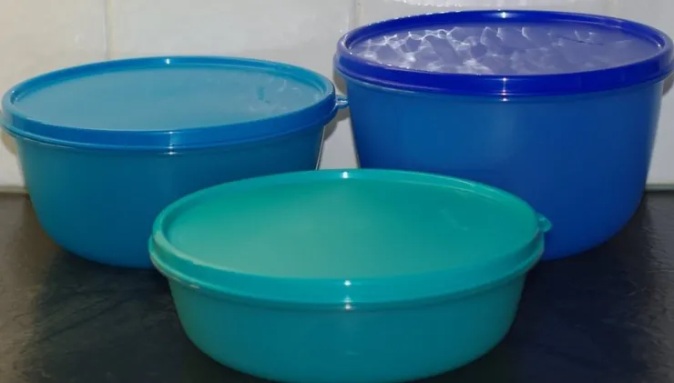 3 Nya rundletter med täta lock på 1, 1,5 och 2 liter från Tupperware i blå nyanser. Perfekta till all förvaring i kylen, som skål, till pysselgrejer eller vad du vill, endast fantasin sätter gränserna.