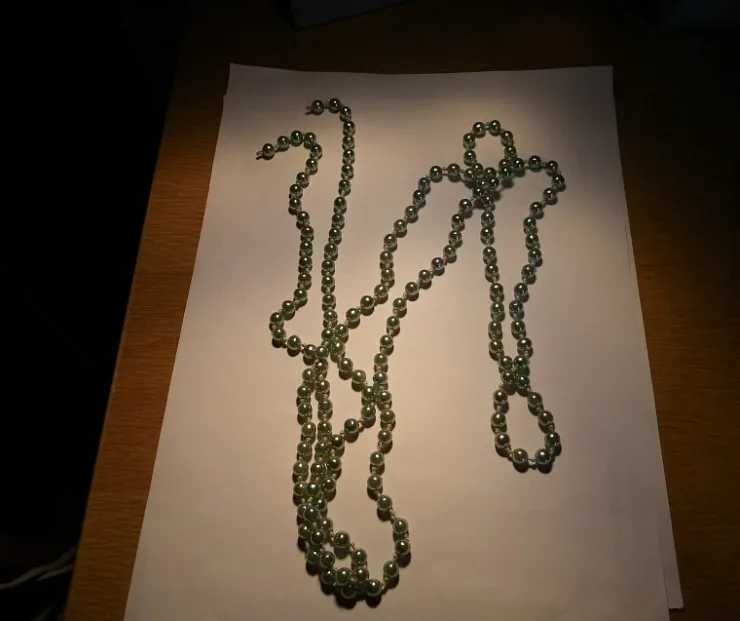 Tradera 4. Delar av smycken trasigt blått pärlhalsband ca 162 cm långt> Smykketilbehør