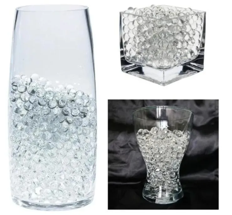 Du får en påse med klara miniatyrpärlor. För att växa till pärlor, tillsätt bara vatten och låt vattenpärlor sitta tills de är runda släta eleganta pärlor. Vasfiller klara vattenpärlor är gjorda av giftfri superabsorberande tvärbunden polymer.