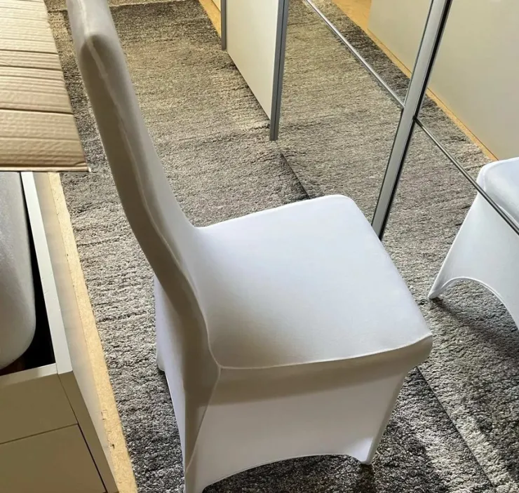 Bankettstolsöverdraget är tillverkat av 94% polyester och 6% spandex, vilket har bra elasticitet. Bekväm nog att få varje gäst att känna sig hemma.