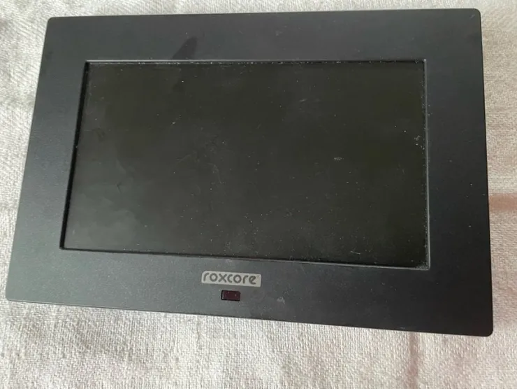 7-tommer digital foto ram fra Roxcore. Nem at bruge med tydelige knapper. Perfekt til at vise dine favoritbilleder.